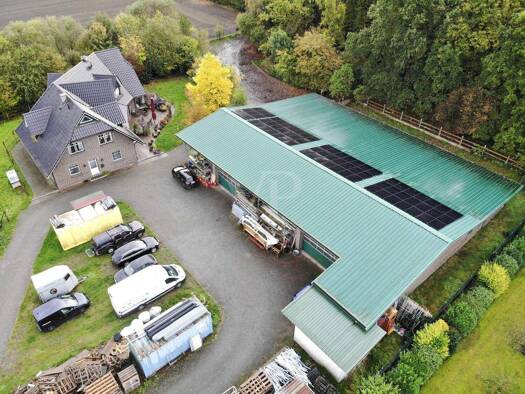 Wohnen und Arbeiten unter einem Dach? Dieses idyllische Anwesen macht es möglich! Auf dem beeindruckenden, rund 6.529 m² großen Grundstück wurde zunächst ca. 2004 die Gewerbehalle errichtet. Sie umfa...
