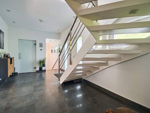 Dieses exklusive Architektenhaus erreichen Sie über Ihre private Zufahrt. Es ist eingebettet in ein weitläufiges, ca. 2.056?m² großes Grundstück mit rund 1.145?m² liebevoll gestalteter Gartenfläche. ...