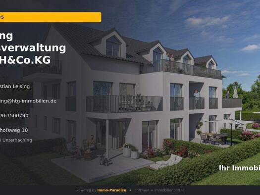 Die von uns angebotene 4-Zimmer-Wohnung wurde 1998 nachträglich im Dachgeschoss eines 12-Parteien-Hauses in Ortsrandlage von Unterhaching ausgebaut und stellt ein absolutes Unikat auf dem Wohnungsmar...