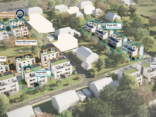 In der Von-Werth-Straße in Pulheim-Brauweiler entsteht ein neues Wohnquartier mit insgesamt 34 Doppelhaushälften in drei unterschiedlichen Varianten. Alle Häuser erstrecken sich über vier Etagen und ...