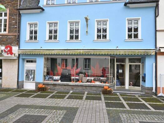 Schönes Wohn & Geschäftshaus mitten in der Fußgängerzone von Bad Bertrich. Im hellen Erdgeschoß mit einer großen Schaufensterfront befindet sich aktuell ein Café welches seit 20 Jahren von den Ei...