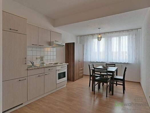 ### Please note the availability date! Bitte das Verfügbarkeitsdatum beachten! ### kleine möblierte Wohnung in zentrumsnaher Wohnlage; helles Wohnzimmer mit Sofa, Schrankwand und TV, kleine Küche mit...