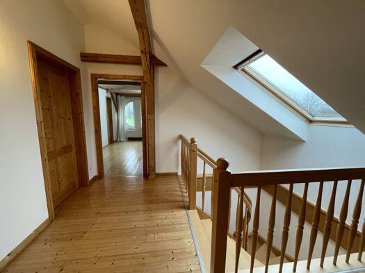 Die Besichtigung ist wie eine Reise in die Vergangenheit. Nicht nur hohe Decken, alte Holzbalken und ein im laufe der Jahre mehrfach an die Bedürfnisse der jeweilige Eigentümer angepasster Grundriss ...