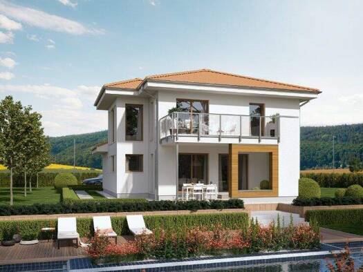 Das Haus ist auf einem realen Baugrundstück geplant oder auf einem Grundstück in einer Planungsphase. Die Bilder zeigen ggf. Extras, die im Rahmen des Bebauungsplans noch geprüft werden müssen. Bitte...