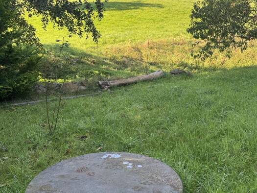 Das über 1.200 m² große Grundstück befindet sich an einer kleinen, nur von Anwohnern genutzten Anliegerstraße. Es ist gut befahrbar, vollständig eingefriedet und geprägt von gewachsenem Baum- und Pfl...