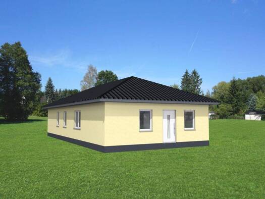 Dieser geräumige Bungalow bietet Ihnen ohne großen Schnickschnack viele Räume für Ihre Familie. Inklusivleistungen: - Erdarbeiten/Hausgründung bis 0,80m - Bodenplatte - Mehrspartenhauseinführung - Au...