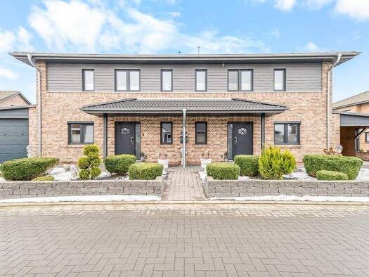 Dieses im Jahr 2015 errichtete Doppelhaus überzeugt durch seine moderne Bauweise und seine attraktive Lage in einem ruhigen Neubaugebiet. Das ca. 675 m² große Grundstück bietet Platz für die ganze Fa...