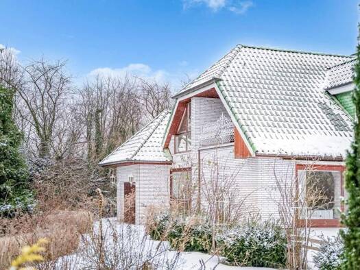 Dieses außergewöhnliche Wohnhaus in ruhiger Waldrandlage in Elmshorn ist kein Objekt von der Stange. Der Entwurf geht auf die Idee des damaligen Bauherrn zurück, die Form und Dynamik eines Adlers arc...
