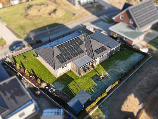 Dieser Bungalow aus dem Baujahr 2023 verbindet klare Architektur mit zeitgemäßer Technik und durchdachter Raumplanung. Auf rund 121 Quadratmetern Wohnfläche bietet das Einfamilienhaus ein großzügiges...