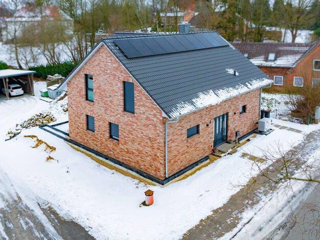 Auf zwei Ebenen vereint dieses Haus durchdachte Planung mit markantem Design. Die Fassade spielt mit Symmetrien und verleiht dem Baukörper eine besondere Präsenz, während der überdachte Eingang einen...