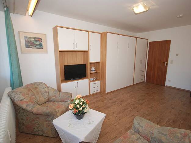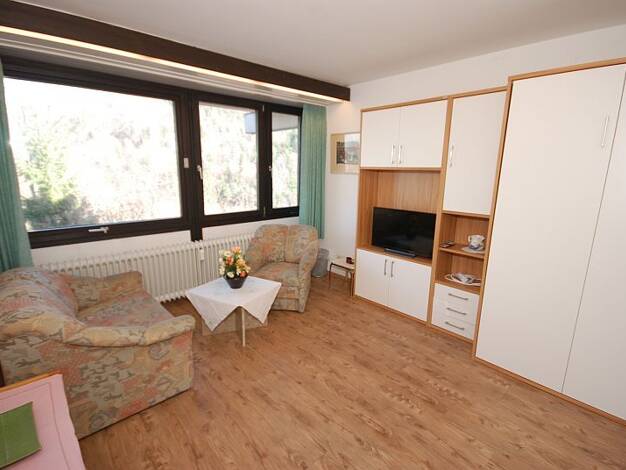 Objektbeschreibung Ansprechende und neu möblierte Zwei-Raum Wohnung im 1. OG eines Wohnhauses mit Bergblick in einem angenehmen Umfeld. Raumaufteilung Zwei-Zimmer-Wohnung im 1. OG mit Balkon. Wohnzimmer mit Sofa, Esstisch mit 2 Stühlen, Sideboard mit Fernseher. WLAN ist vorhanden. Zum Küchenraum gelangt man über den Trepppenhausflur. Der Küchenraum verfügt über eine Einbauküche einen Esstisch mit zwei Stühlen und eine Waschmaschine. Über den Küchenraum gelangt man zum Balkon. Vom Balkon bietet ...