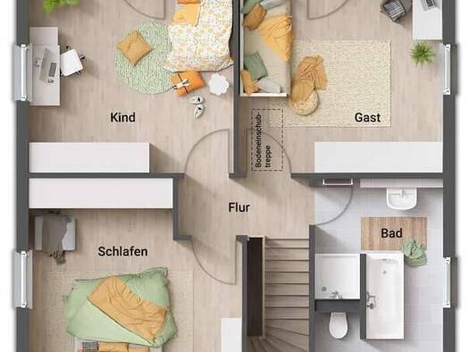 Schick und gradlinig - die perfekte Form zum stadtnahen Wohnen auf 2 Ebenen - ganz ohne Dachschrägen und Komfortverlust. Viel Raum zum Leben, ein Platz fürs Home-Office und im Obergeschoss eine Ankle...
