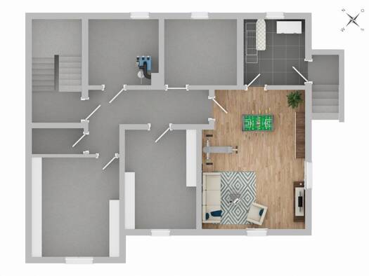 Zu vermieten ist eine Erdgeschosswohnung in einem Zweifamilienhaus mit Garten. Die Wohnung wurde renoviert, ist großzügig, hell und ebenerdig, hat einen offenen Grundriss und eine direkte Verbindung zur dazugehörigen Garage. Der Wohn- und Essbereich mit Einbauküche hat Zugang zu zwei überdachten Terrassen und dem Garten. Vom Schlafzimmer geht es zum Badezimmer, dieses ist mit einer bodengleichen Dusche, einer Badewanne, Doppelwaschtisch und WC ausgestattet. Ein weiteres Zimmer und ein Gäste-WC ...