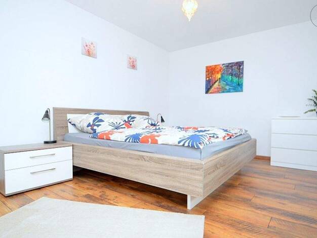 Modern, gemütlich möblierte 2-Zimmer-Wohnung mit WLAN in einem gepflegten Mehrfamilienhaus in Oberasbach. Die Möblierung des Wohnzimmers besteht aus einer schwarzen Ledereckcouch, Couchtisch, Flatscreen TV, Wohnwand, Regalen und einem Schreibtisch mit Bürostuhl. Das Schlafzimmer ist eingerichtet mit einem französischen Bett (1,40x2,00 m), einem Nachtkästchen und einem geräumigen Kleiderschrank. Die separate Einbauküche ist mit allen Utensilien des täglichen Bedarfs ausgestattet wie Backofen, Ge...