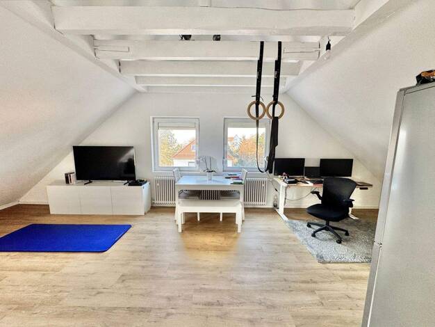 Diese gepflegte Dachgeschoss-Maisonette besticht durch ihre hervorragende Lage und ihren besonderen Wohlfühlcharakter. Der nach Südwesten ausgerichtete Balkon bietet Ihnen entspannte Stunden mit Blic...