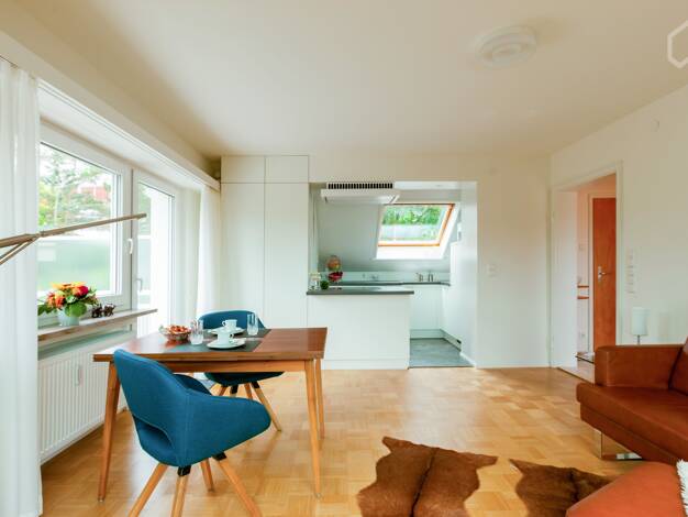 Wohnen auf Zeit in Stuttgart-Botnang Möblierte 1,5-Zimmer-Wohnung mit Balkon, Aufzug und Tiefgarage Diese hochwertig möblierte 1,5-Zimmer-Wohnung befindet sich im 6. Obergeschoss und zugleich obersten Stockwerk eines gepflegten Mehrfamilienhauses in ruhiger Wohnlage von Stuttgart-Botnang. Die Wohnung ist bequem per Aufzug erreichbar und bietet durch ihre erhöhte Lage eine besonders schöne Aussicht ins Grüne. Ein besonderes Highlight ist der großzügige Balkon in Südwestlage mit ca. 14,5 m². Von ...