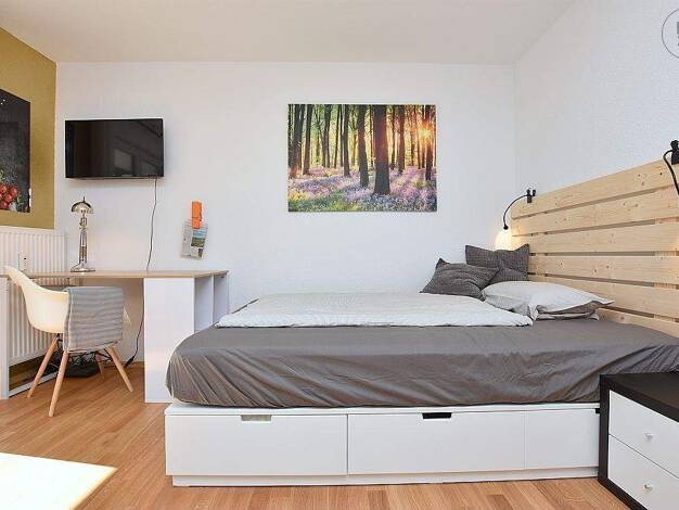Helles, modern möblierte 1-Zimmer Wohnung mit Balkon und WLAN in direkter Nähe zur Uni Hohenheim in Stuttgart Plieningen. Alle Geschäfte des täglichen Bedarfs sowie die U-Bahn (H Plieningen) befinden...