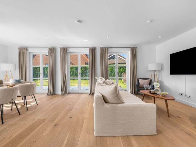 In begehrter Lage von Sylt-Tinnum präsentiert sich diese hochwertige Doppelhaushälfte mit ca. 145 m² Wohnfläche, 5 Zimmern und 2 Bädern als stilvoller Rückzugsort mit repräsentativem Charakter. Das b...