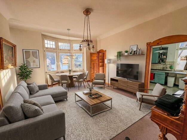 Diese charmante Villa aus der Gründerzeit vereint historischen Charme mit modernem Wohnkomfort. Nach einer längeren Zeit des Leerstands wurde das denkmalgeschützte Gebäude liebevoll und umfassend saniert - von der Grundsubstanz bis ins Detail. Dabei wurde besonderer Wert darauf gelegt, die historische Bausubstanz zu erhalten und gleichzeitig ein zeitgemäßes Wohngefühl zu schaffen. Auf insgesamt drei Etagen sind neun attraktive Mietwohnungen entstanden. Das Haus wurde im Zuge der Sanierung mit e...