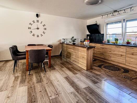 Die hochwertig sanierte Wohnung befindet sich in ruhiger Ortslage in Vogtsburg-Oberrrotweil. Die Raumaufteilung gliedert sich wie folgt: Diele, Wohnen, Essen/Kochen mit Ausgang zum Balkon, Schlafen, 3 Kinderzimmer (Büro/Gast), Hauswirtschaftsraum, Abstellraum, Badezimmer, Gäste-WC
