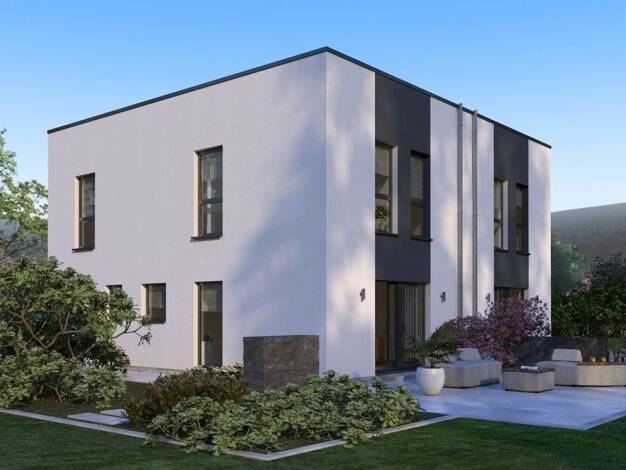 Purismus pur - dafür steht unser Doppelhaus 06. Allerdings spiegelt sich dieser Purismus nur in der schnörkellosen kubistischen Bauweise mit modernem Flachdach und symmetrischer Fassadengestaltung, n...