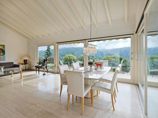 Repräsentative Villa in erhöhter Wohnlage am Ortsrand mit Blick über die Wiesen und Felder sowie über den Ort. Allerbeste Ausstattung, klare Linien, sehr helle Räume, außergewöhnlich aufwendige Haust...