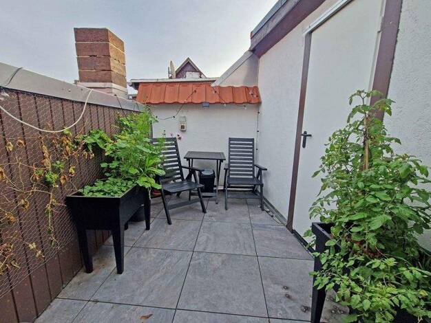 Der Mittelpunkt der Wohnung ist der offen gestaltete Wohn- und Essbereich, der durch eine angeschlossene Küche ergänzt wird. Große Dachfenster sorgen für ein lichtdurchflutetes Ambiente. Der Bereich ...