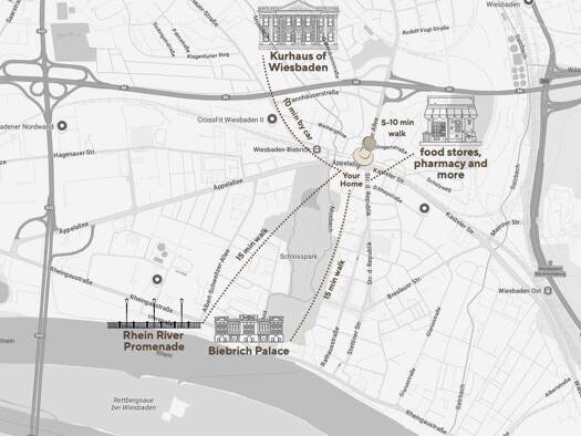Die ruhige und zentrale Lage der Wohnung bietet optimale Anbindung auf die Autobahn A66 und A643. Alle Geschäfte des täglichen Bedarfs, die Wiesbadener Innenstadt, der Biebricher Schlosspark, der Rhe...