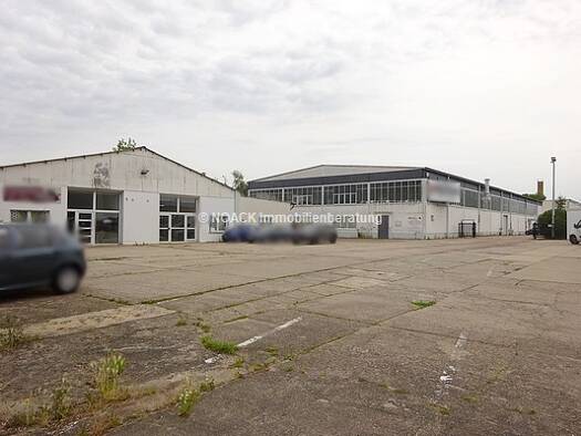 Gewerbegrundstück mit verschiedenen Gebäuden: Hallen, einem zweigeschossigen Bürogebäude, einem Heizhaus, einem ehemaligen Pförtnerhaus, einem Schleppdach (ehemaliges Kohlenlager), sowie einer ehemal...