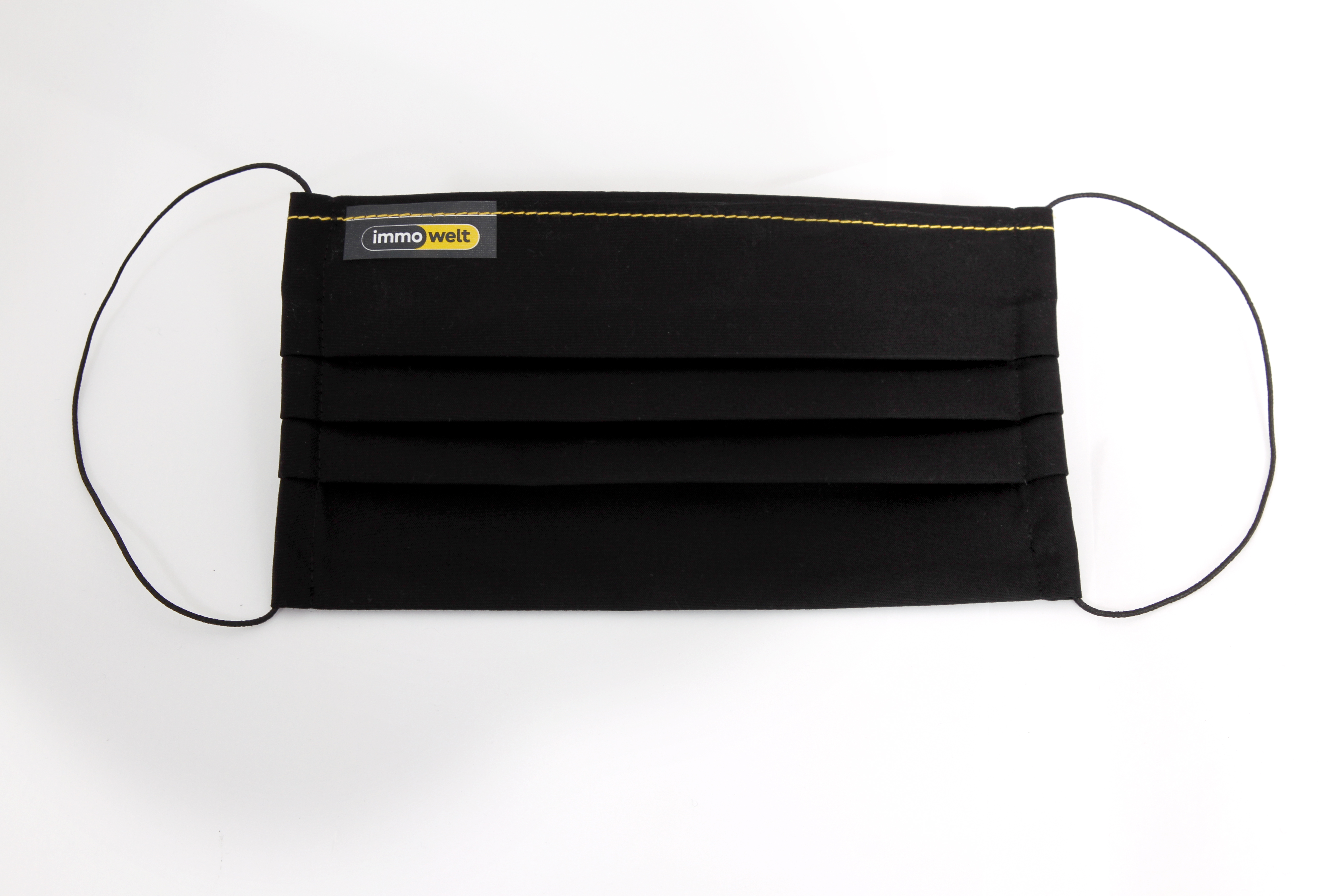Die Mund-Nasen-Maske von Eterna ist im dezent-stylishen immowelt Design gehalten. Die handgefertigten Masken sind aus schwarzer Baumwolle und werden komplett in Europa hergestellt. Das doppellagige Material ist waschbar und damit wiederverwendbar. Alle verwendeten Grundmaterialien sind nach Oekotex © Standard 100 zertifiziert.
